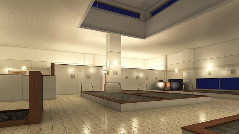 Для бальнеологического комплекса выбрана концепция полноценного семейного отдыха, как это практикуется в Японии и Южной Корее. В одноэтажном здании располагаются бассейны с разной функциональностью, массажные салоны, парикмахерские, зоны отдыха, кафе, детские игровые комнаты.
