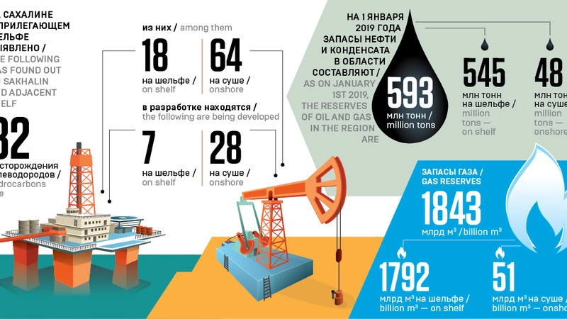 Стабильность и предсказуемость достигнута благодаря проектам «Сахалин-1» и «Сахалин-2», они обеспечивают основной объем добычи углеводородов — 89,2 процента нефти и конденсата и 85,7 процента газа.