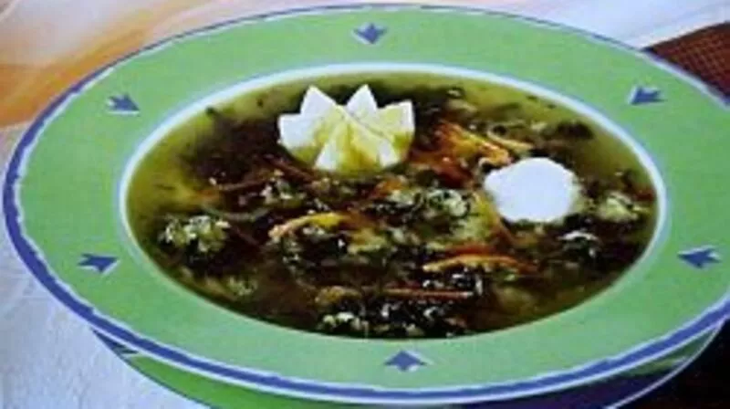 Блюдо подают со сметаной, разрезанным наполовину вареным яйцом, посыпают рубленой зеленью.
