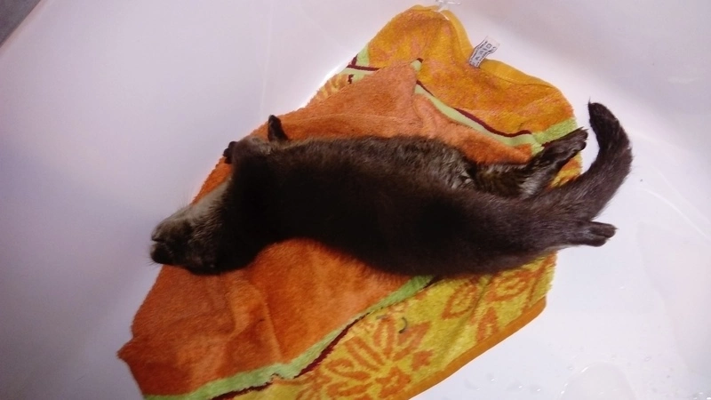 Почему мать оставила своего малыша, сложно сказать. Возможно, она погибла, либо отказалась от выдренка из-за того, что была не в состоянии его прокормить. В дикой природе выдры обычно приносят потомство в конце весны – начале лета. Но иногда появляются и поздние выводки. К таким осенним малышам и относится новый питомец Александра.