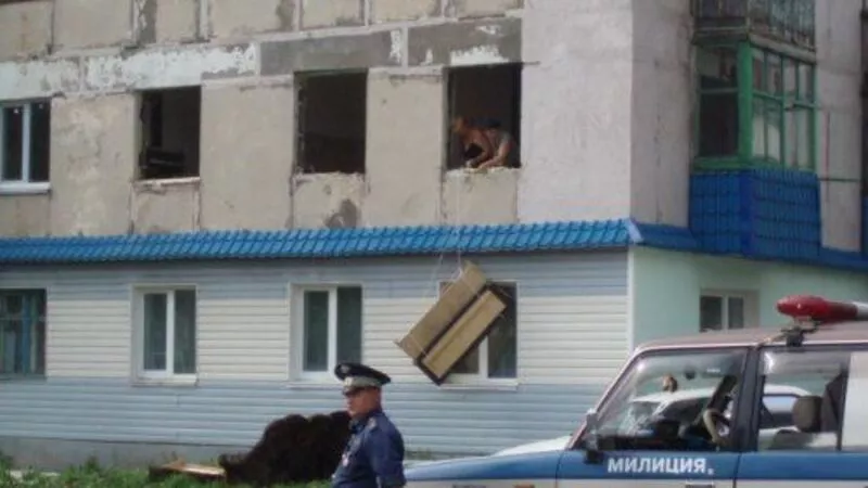 Типичная картина для Невельска сейчас – стоящие возле домов тюки с вещами и пустые глазницы окон. Хозяева квартир вынимают пластиковые рамы и забирают с собой. Некоторые вытаскивают вещи при помощи крана или спускают с балконов на веревке. Толчки все реже, люди уже не так бояться заходить в свои дома. Но шок до конца еще не прошел. Это чувствуется во всем.