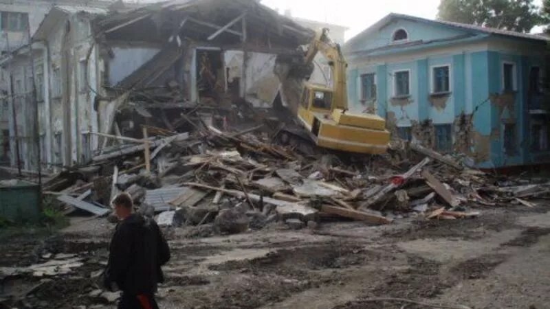 6 августа под вечер начали ломать первый дом – по улице Советской, 76. Картина невеселая: экскаватор метр за метром обрушивает кровлю и стены. На некоторых окнах висят шторы, в одной из квартир стоит холодильник – хозяева не стали его забирать. Следующие на очереди дома – № 31 по ул. Советской и №4 по ул. Вакканай.