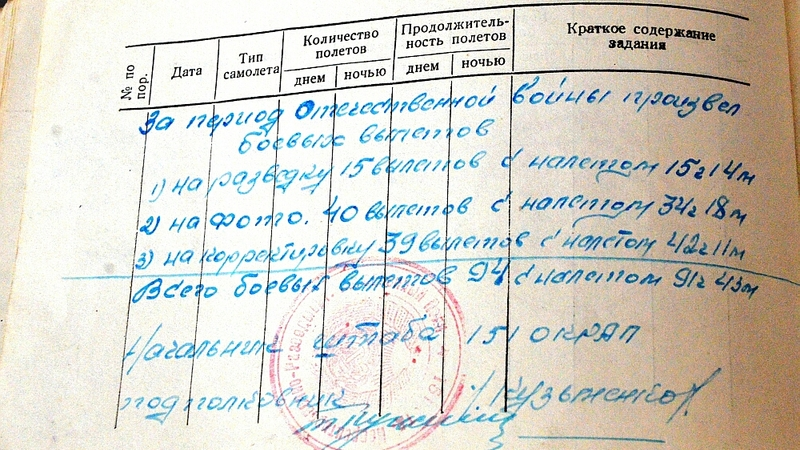 Личная летная книжка выдается каждому пилоту, но в годы войны она имела особую ценность для обладателя, ведь в ней отмечалось количество боевых вылетов.