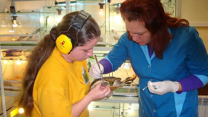 За здоровьем питомцев сахалинского зоопарка следят три специалиста. Моими гидами в этот день стала семья ветеринаров Зайцевых. Андрей Викторович — заведующий ветеринарно-карантинным отделом, его жена Маргарита Анатольевна — ветеринарный врач первой категории. Они — одногруппники, вместе учились в институте в Днепропетровске. Там и сыграли студенческую свадьбу.