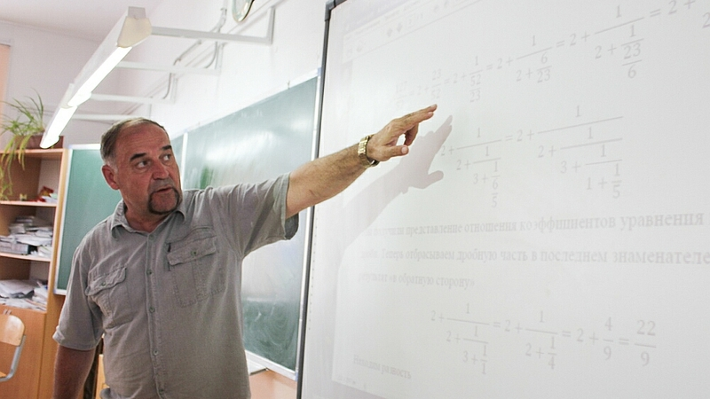 Заглядываем в один из кабинетов – здесь кандидат физико-математических наук и завлабораторией математического моделирования Владивостокского госуниверситета экономики и сервиса Александр Шавлюгин учит своих подопечных укрощать цепные дроби. Дети внимательно слушают преподавателя и старательно копируют в тетрадь многоэтажные математические конструкции.