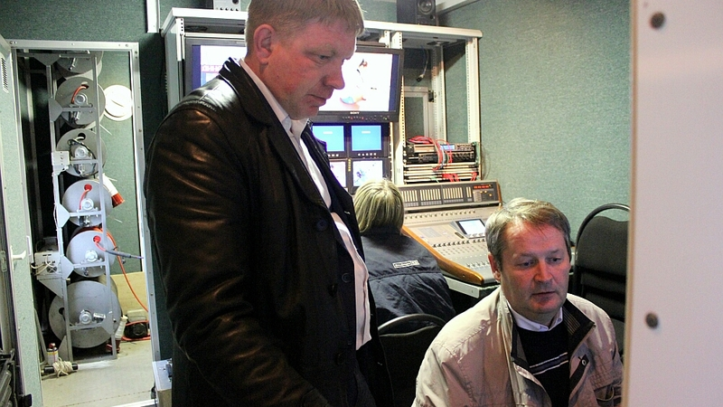 Вместе с группой на площадке работает ПТВС – передвижная телевизионная станция.