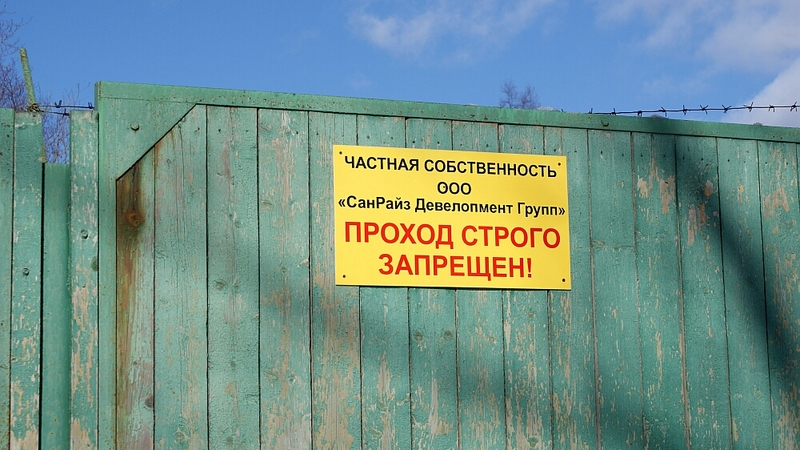 Строгая надпись на глухой стене «Частная собственность «Санрайз девелопмент», проход запрещен!» Непонятно, правда, зачем туда проходить, но в заборе кто-то сделал дырку. Заглянул только ради любопытства. Пустырь да одинокий агрегат типа экскаватора... А еще говорят, в Южно-Сахалинске земли нет…