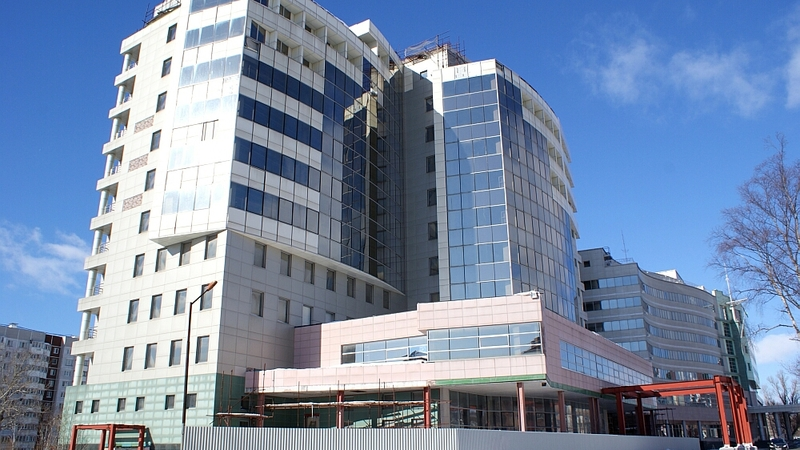 Зато здесь гордо высится недостроенное здание офисного центра. По замыслу он должен представлять собой единой целое с гостиницей «Пасифик Плаза». Но гостиница работает, а на офис, строительство которого началось еще в 2007 году, денег, похоже, не хватило. В принципе здание выглядит неплохо, и город даже в какой-то степени украшает, но облицовка уже начинает облетать...