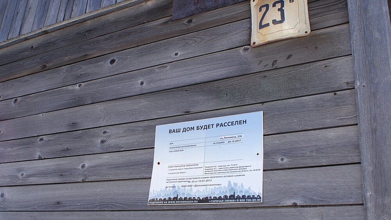 На многих домах висят таблички – «Ваш дом будет расселен до 29.12. 2017 года». Застройщиком микрорайона собирается выступать «Дальэлектромонтаж». Но это вряд ли произойдет. ДЭМ в процессе банкротства. И девятиэтажку в этом районе компания должна была сдать еще в январе 2015 года. Как говорил по этому поводу мэр города Сергей Надсадин, за дом заплачен аванс в размере примерно 80 процентов от его стоимости. Но проблема еще и в том, что люди не хотят отсюда уезжать.