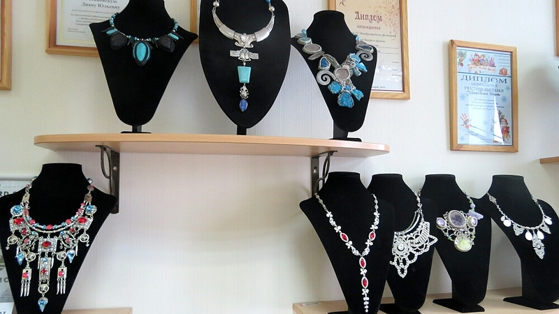 В коллекции Дианы Устиновской более тысячи изделий: колье, серьги, броши, кулоны, браслеты. И все это сделано с использованием камней. За шесть лет создана целая галерея разнообразных украшений – на любой вкус и возраст. Эта каменная феерия восхищает и завораживает.