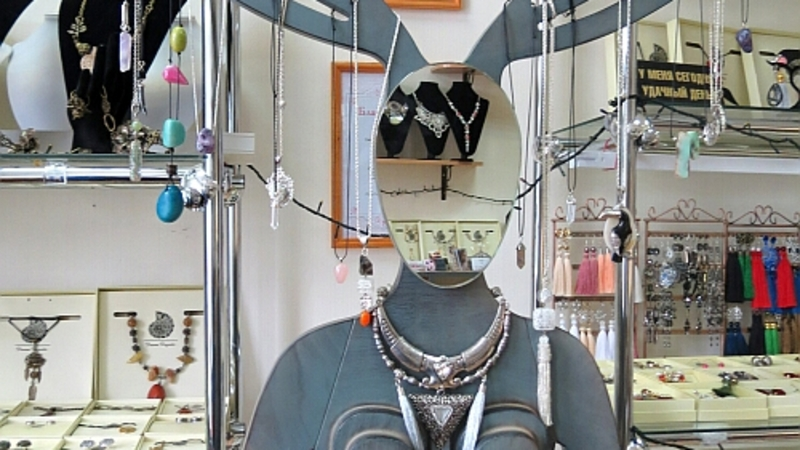 Есть у Дианы необычный помощник – манекен в виде мифической женщины-дриады с ветвистыми рогами. В античной мифологии эти лесные нимфы считались духами леса. В наше время, по замыслу художников, рога дриады можно использовать дома, чтобы повесить шляпы или зонтики. Устиновская пошла дальше, решив с помощью деревянного манекена демонстрировать свои новинки. Свою помощницу Устиновская зовет просто – Нина-оленина. Теперь все ее особо значимые украшения вывешиваются на ветвистые рога симпатичной особы.