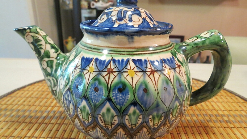 Другой чайный гигант украшен еще более изысканно – весь в разноцветной мелкой цветочной вязи. Он из Китая и, судя по клейму мастера, это старинная вещь. Заварник привезли из Поднебесной еще в 30-х годах прошлого столетия.