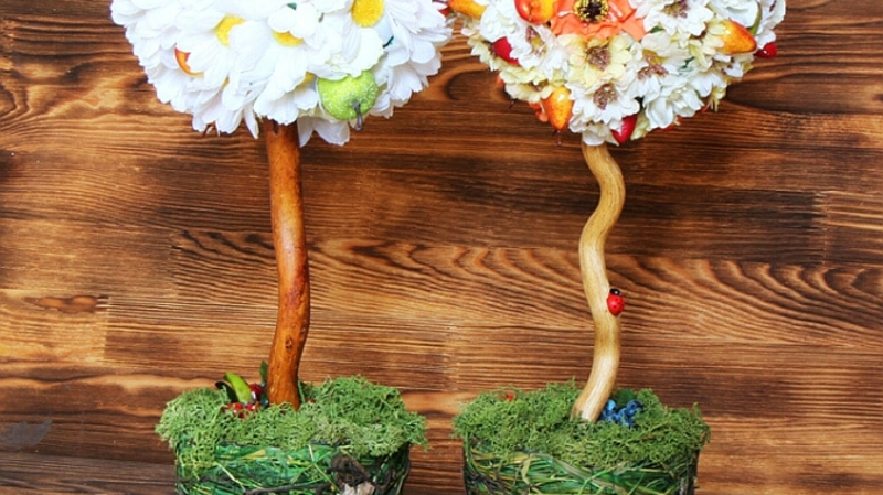 У каждой мастерицы свой творческий почерк, работы Елены Козиной не спутаешь ни с какими другими. Ее ноу-хау – чайный домик в виде печки с миниатюрой. Здесь есть место и для чайных пакетиков, и для сладостей. Многих удивляют своей изысканностью ее топиари – декоративное дерево в виде шара из кофейных зерен, искусственных цветов или других декоративных материалов. Свое умение мастер не раз подтверждала на многочисленных выставках декоративно-прикладного творчества. На стене в домашней мастерской – десятки дипломов. Творческие задумки расписаны на месяцы вперед, хватило бы только времени.