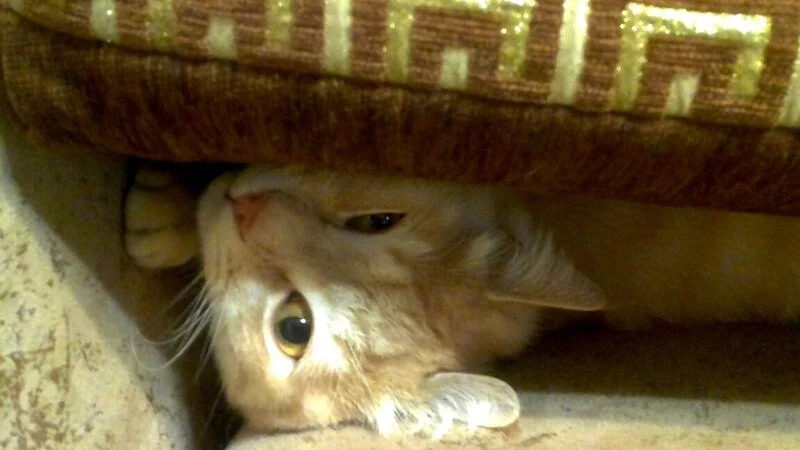 Помимо шкафов и холодильника кот любит прятаться под простынями и покрывалами, а также отдыхать в тазах и коробках.