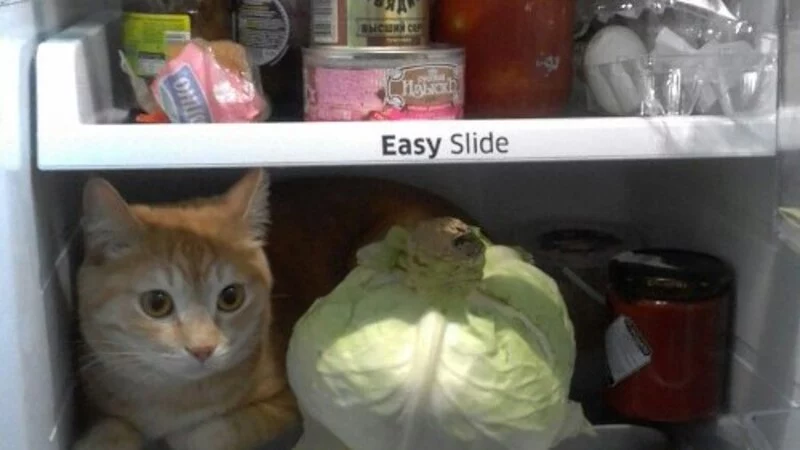 Вместе с ленью у кота появилась сильная тяга забираться в самые неожиданные места. Помимо кошачьей «классики» – шуршащих пакетов и шкафов – Облом очень любит сидеть в холодильнике. Закаленный кот не гнушается и морозилкой, но полностью в ней не помещается. За последний год Облом превратился в довольно упитанного домашнего питомца.