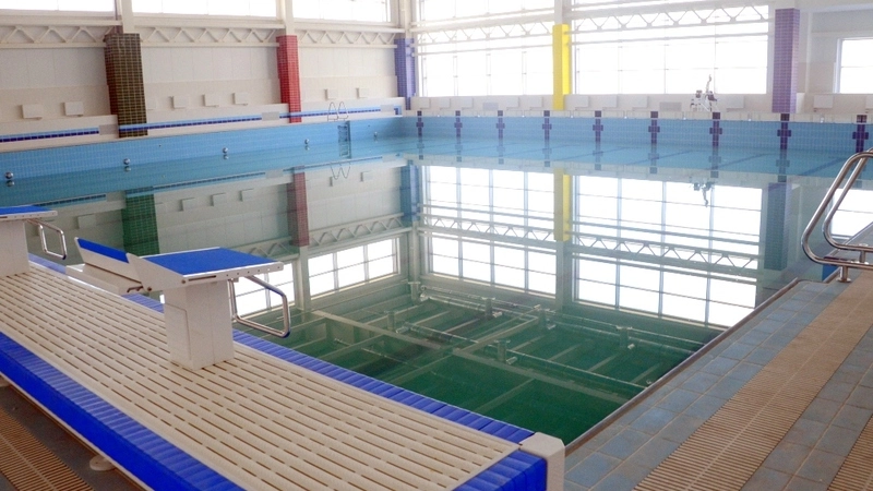 Вторая мощная составляющая комплекса «Аква Сити» – водноспортивная. Это, по сути, два бассейна, аналогов которым в Сахалинской области еще не было. В большой, 50-метровой чаше на 10 дорожек можно будет проводить соревнования самого высокого уровня, вплоть до чемпионатов мира по плаванию. Важно, что имеются и зрительные трибуны на 500 посадочных мест, а также собственный пресс-центр для освещения спортивных мероприятий. А для того, чтобы бассейн стал более функциональным, подрядчик установил подвижную перегородку, которая при необходимости разделит чашу на два 25-метровых бассейна.
