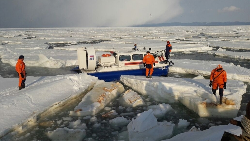 Спасатели до сих пор помнят 2012 год, когда начало ломать и отжимать лед на 30-километровой полосе по югу от Взморья. Вместе с ним уносило в море около 700 человек. Спасательная операция длилась более пяти часов. Более четырех часов работал вертолет Хабаровского авиационно-спасательного отряда — между прочим, один час его полета стоит сейчас 176 тысяч рублей. Все это время рыбаков снимали со льдины шесть лодок наших спасателей. В конце операции лед отогнало от берега уже на 2,5 километра.