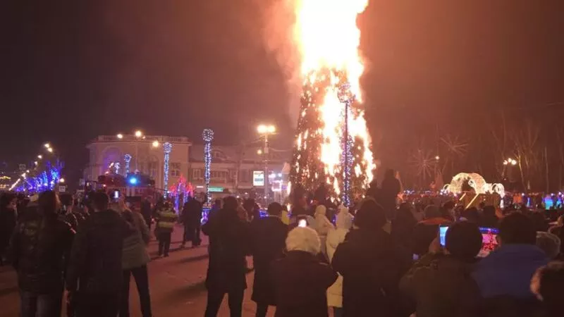 Не повезло новогодней ёлке Южно-Сахалинска в 2018 году. Она сгорела на площади Ленина практически после боя курантов, простояв в наступившем году всего час.