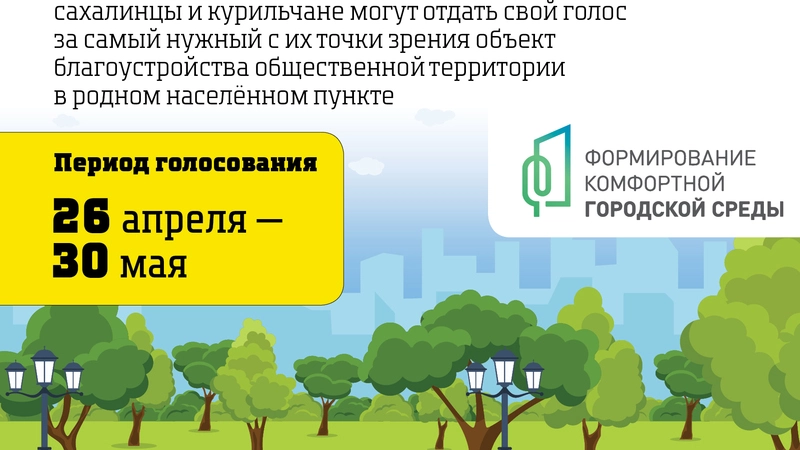 В рамках федерального проекта «Формирование комфортной городской среды» сахалинцы и курильчане могут отдать свой голос за самый нужный с их точки зрения объект благоустройства общественной территории.