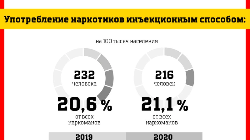 А вот инъекционным способом употреблять наркотики стали больше - 21%.