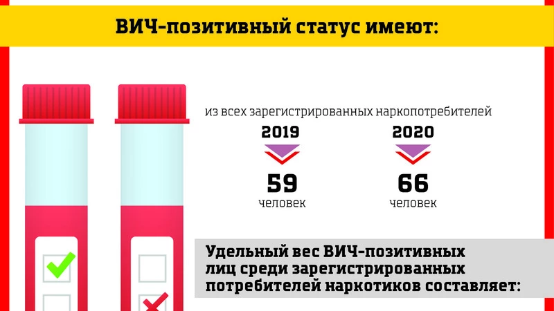 ВИЧ-позитивный статус имеют 66 наркопотребителей, за последний год их стало больше.