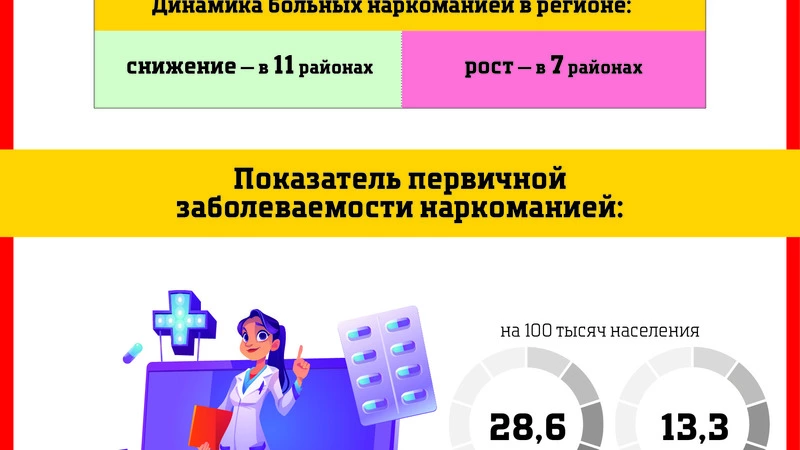 В регионе наметилось снижение числа лиц, употребляющих наркотики. Специалисты связывают это с комплексом мер по предотвращению распространения опасных веществ и медицинской профилактикой их употребления. Однако по некоторым показателям положение остается тревожным.