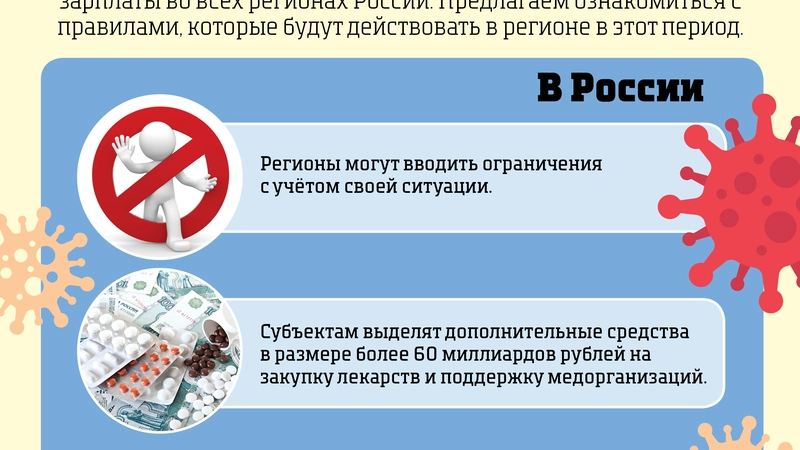 Регионы могут вводить ограничения с учётом своей ситуации. Субъектам РФ выделят дополнительное финансирование на закупку лекарств.