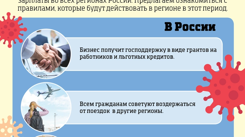 Бизнес получит господдержку за нерабочую неделю. Всем гражданам рекомендовано воздержаться от поездок.