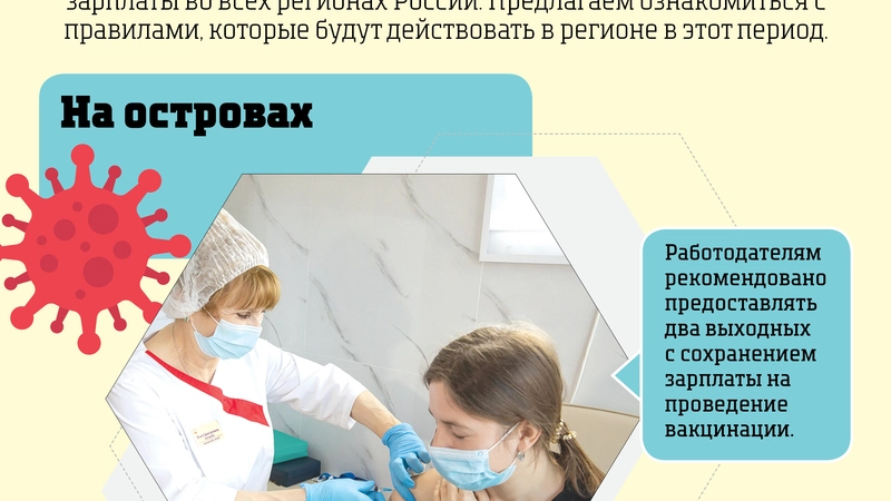 Работодателям рекомендовали предоставлять по два выходных дня с сохранением зарплаты на проведение вакцинации.