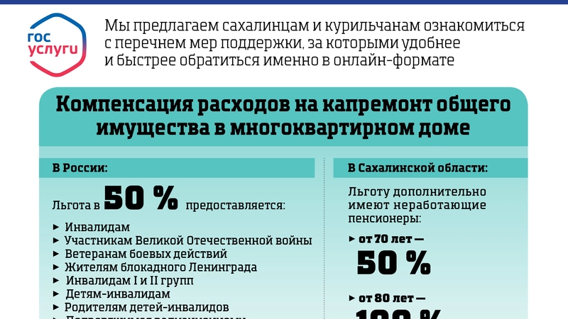 Компенсацию расходов на капремонт общего имущества многоквартирного дома также можно получить, подав заявку на портале. На эту льготу имеют право многие категории граждан.