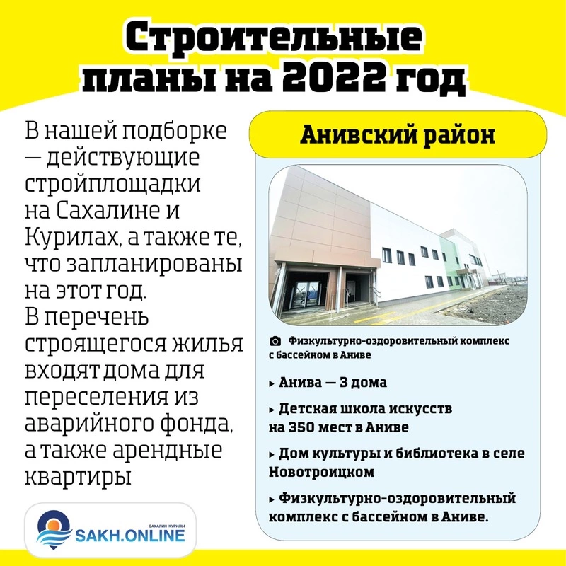 В нашей подборке - действующие стройплощадки на Сахалине и Курилах, а также те, что запланированы на этот год. В перечень строящегося жилья входят дома для переселения из аварийного фонда и арендные квартиры