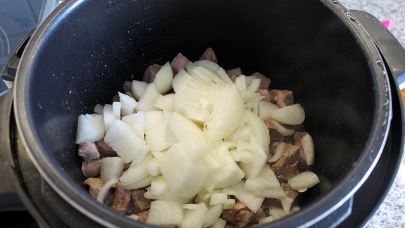 В идеальном детском плове лук незаметен. Наша задача – сделать так, чтобы он почти растворился, поэтому не будем технично следовать инструкции, а приспособим мультиварку под индивидуальные запросы.