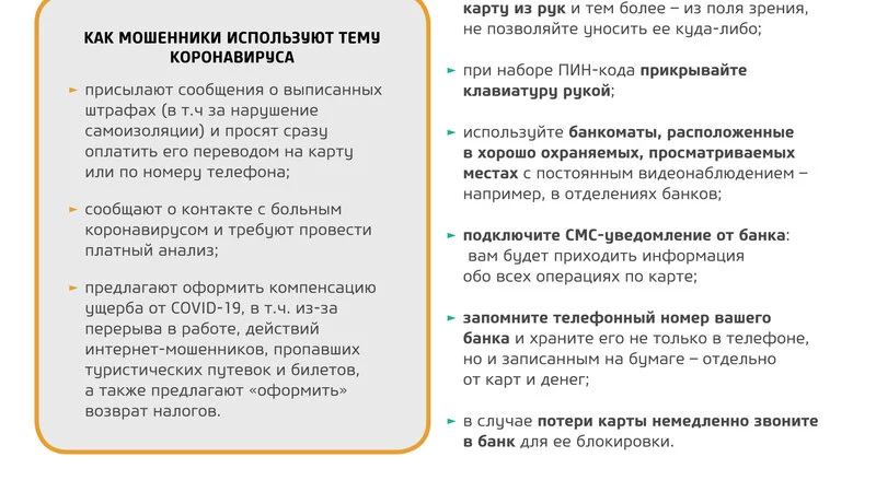 В первую очередь стоит напомнить, что ни в коем случае нельзя диктовать незнакомцам данные банковской карты, а также совершать манипуляции с ее данными под их диктовку. Кроме того, нельзя переходить по ссылкам, которые вам отправляют «сотрудники банка», убедитесь, что это точно ваш банк. Если ваш родственник, либо друг просит перевести деньги — задайте несколько личных вопросов, обычно на этой ноте мошенник теряет интерес и удаляет сообщение. Обязательно проверяйте информацию о благотворительных акциях и не соглашайтесь участвовать в сомнительных «успешных» проектах с обязательным первоначальным взносом.