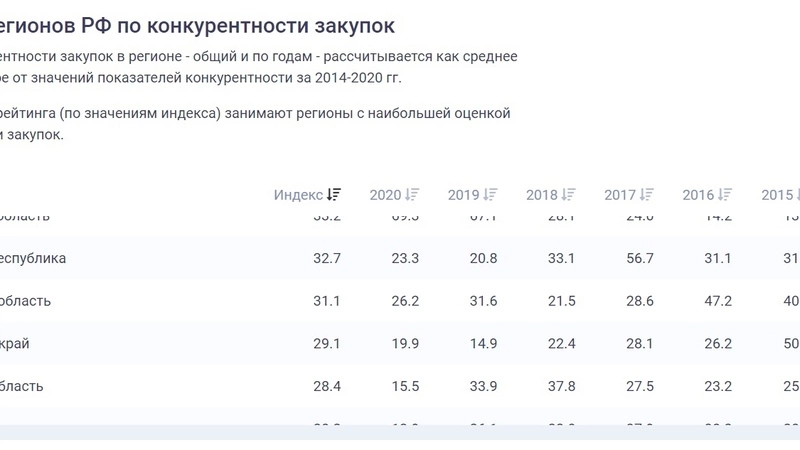 При составлении рейтинга аналитики использовали данные о закупках с положительной разницей между начальной максимальной ценой и итоговой ценой заключенного контракта. Анализ позволяет оценить конкурентность закупок в количественном и стоимостном выражении.