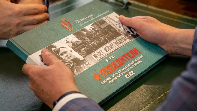 В конце встречи Георгий Карлов вручил Валерию Лимаренко восьмой том альманаха «Победители», посвященный 75-летию Сахалинской области.
