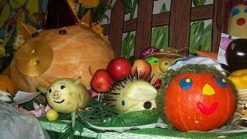 На выставке представлено более 100 видов растений. Ребята смастерили из овощей, фруктов, ягод настоящие произведения искусства. Баклажаны превратились в животных, людей, кораблики, из тыкв умельцы сделали корзинки, ракушки. На выставке даже есть бабка-ёжка, сделанная из картофеля. Также зрители любовались красивыми цветочными букетами, смогли попробовать на вкус молочные продукты, представленные школьниками из с. Воскресеновка Тымовского района. Ребята с холмской станции юных натуралистов демонстрировали посетителям кроликов и морских свинок.