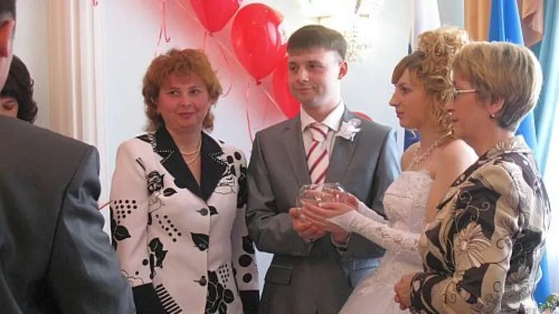 Поздравить Вячеслава и Надежду пришли родственники, друзья. Юные артисты подарили жениху и невесте шары, символизирующие веру, надежду, любовь, радость, доброту и мудрость. Согласно старинной традиции, отец невесты при многочисленных свидетелях передал дочь в руки мужа, который принимал на себя ответственность за жизнь и счастье своей молодой супруги.