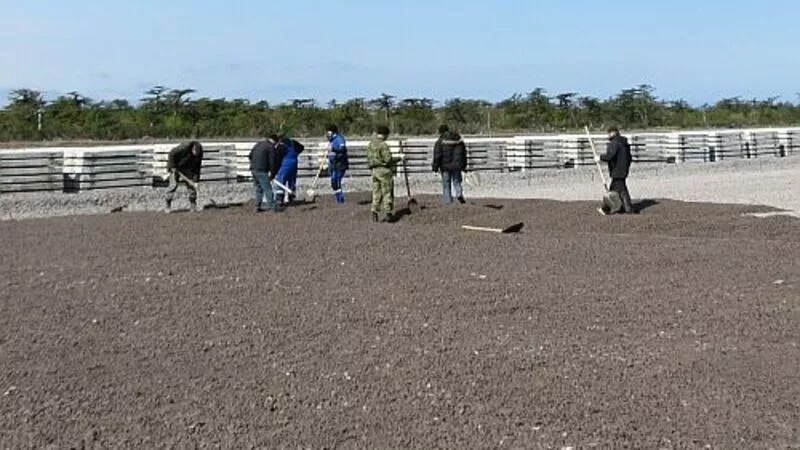 «Сейчас в день удается положить 25-30 плит, но совсем скоро строительным бригадам добавят технику, и производительность возрастет в три с лишним раза», – пояснил корреспонденту РИА «Сахалин-Курилы» прораб строительства Виталий Каргин.