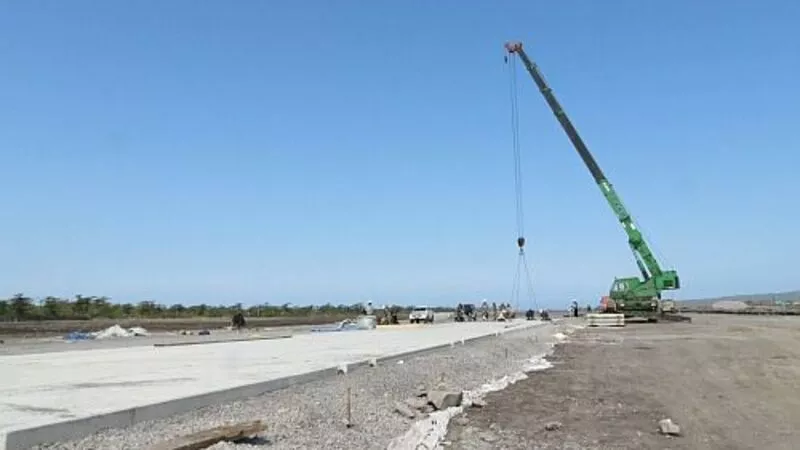 «Укладка плит, из которых образуется взлетно-посадочная полоса, началась на прошлой неделе. На этой операции сейчас сосредоточены все усилия. Сама укладка может вестись только в сухую погоду. Бригады работают весь световой день, с 08:00 до 20:00. На подготовке основания полосы сейчас работает 35 человек, на укладке плит – 30», - добавил он.