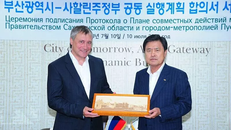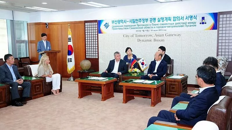 Документ скрепили подписями заместитель председателя островного правительства Сергей Хоточкин и вице-мэр Пусана Ким Джон Хе 10 июля во время рабочей поездки делегации Сахалинской области в Пусан. В ее состав также вошли министр инвестиций и внешних связей региона Екатерина Котова, Дмитрий Хан, мэр Невельского городского округа Владимир Пак.