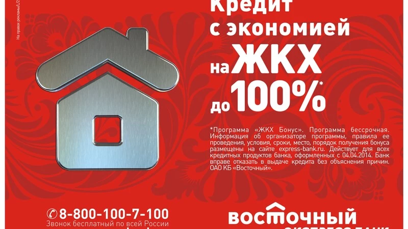 Восточный экспресс-банк представил рынку «ЖКХ бонус» - программу, позволяющую клиентам компенсировать до 100% затрат на коммунальные платежи за счет банка. Стать участником программы «ЖКХ бонус» можно, воспользовавшись любым кредитным продуктом банка. Кредитная организация берет на себя процесс оплаты ежемесячных услуг ЖКХ. Клиенту достаточно любым способом предоставить в банк квитанции ЖКХ, чтобы стать участником программы.