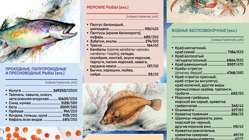 Ущерб от вылова одной камбалы (кроме калкан и тюрбо), минтая, терпуга, наваги, сельди, сардины и некоторых других морских рыб оценили в 137 рублей против ранее установленных 50 рублей. За корюшку и мойву таксу подняли с 20 до 55 рублей.