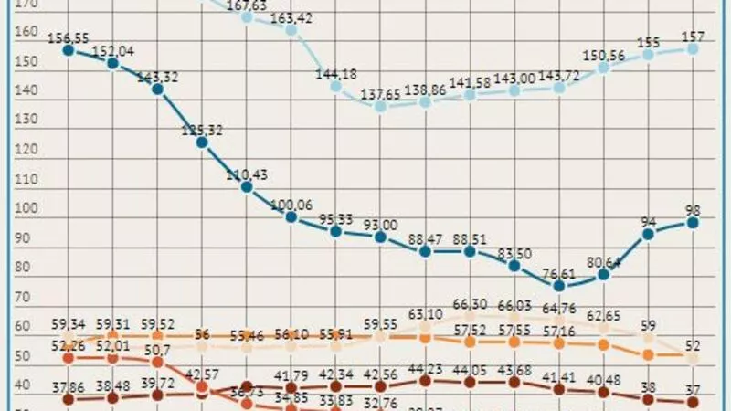 При этом огурцы взлетели в цене на 3,79 рубля, а томаты — на 1,96 рубля. Цена за килограмм яблок, что удивительно, не изменилась в сравнении с прошлой неделей. За популярные фрукты в среднем придется отдать 206 рублей 6 копеек. Стоимость картофеля упала на 1 рубль 13 копеек.