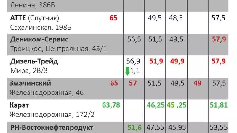 Итак, за неделю цена упала у «Альянса» на 1 рубль на дизельное топливо, сейчас его стоимость составляет — 55,9 рублей за литр. «Дизель-Трейд» скинул 1,1 рубля на АИ-98, сейчас заправиться можно по 56,9 рубля за литр. «Армрос» сбросил по 40 копеек на АИ-95 и АИ-92. Теперь бак можно пополнить на 51,5 и 49,5 рублей за литр.