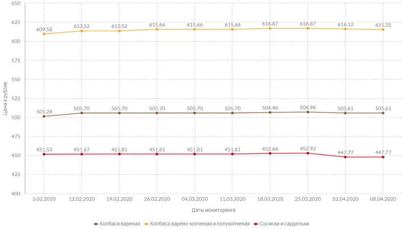 На прилавках с полуфабрикатами снизилась стоимость полукопченой и варено-копченой колбасы — разница составляет 77 копеек. Вареная колбаса по-прежнему стоит 505,61 рубля за килограмм, а за сосиски и сардельки придется отдать 447,77 рубля: их стоимость не поменялась.