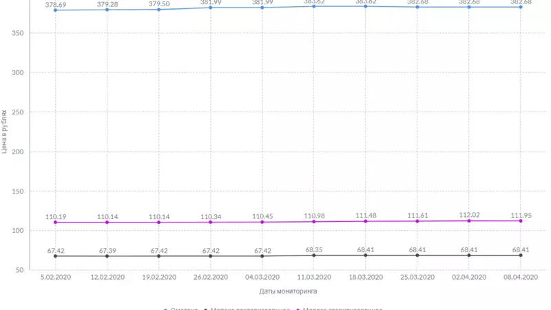 Цена литра пастеризованного молока не изменилась — 68 рублей и 41 копейка. А стерилизованное незначительно подешевело: разница в сравнении с предыдущей неделей составляет 7 копеек. Стоимость сыра остается неизменной: 716 рублей и 49 копеек за килограмм.