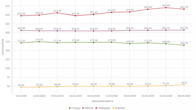 Морковь выросла в цене на 2 рубля и 97 копеек за неделю, а огурцы подешевели на 3 рубля и 96 копеек. Незначительно выросла цена килограмма яблок: самые популярные фрукты теперь стоят на 58 копеек дороже.