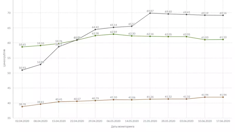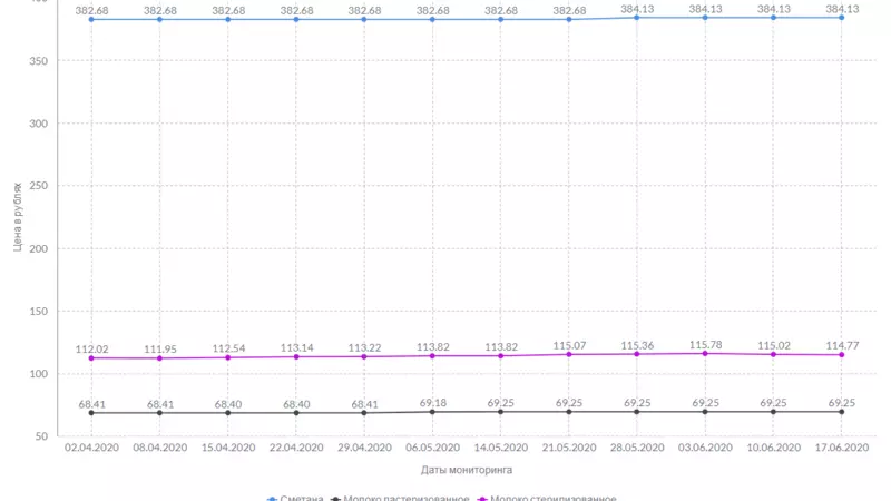 За отчетный период не изменилась цена килограмма сметаны: 384 рубля и 13 копеек. За весовую единицу творога по-прежнему просят 460 рублей и 14 копеек, а вот сыр подорожал на 36 копеек за неделю.