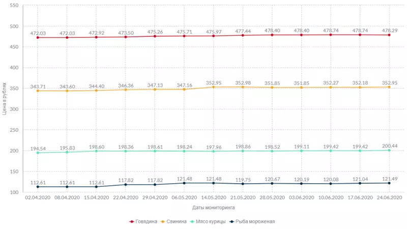 Говядина за прошедшую неделю подешевела на 45 копеек, а свиное мясо подорожало на 77 копеек. Стоимость килограмма курицы выросла на 1 рубль и 2 копейки, а мороженой неразделанной рыбы — на 45 копеек.