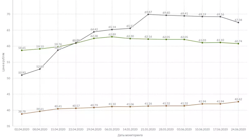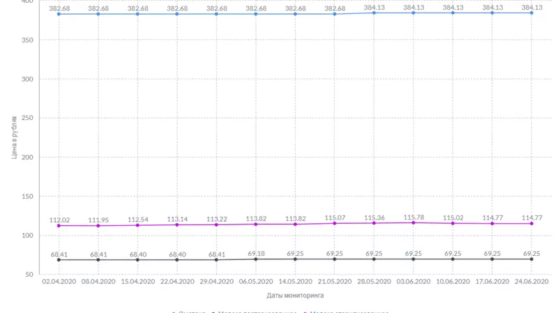 Морковь за отчетный период выросла в цене на 1 рубль и 71 копейку. На этом фоне удивительную стабильность демонстрируют огурцы: как и на прошлой неделе, килограмм отдают за 145 рублей и 93 копейки, и это первый случай, когда стоимость зеленых пупырчатых овощей за неделю не изменилась. Зато свежие томаты подорожали на 2 рубля и 64 копейки, а яблоки — на 70 копеек.